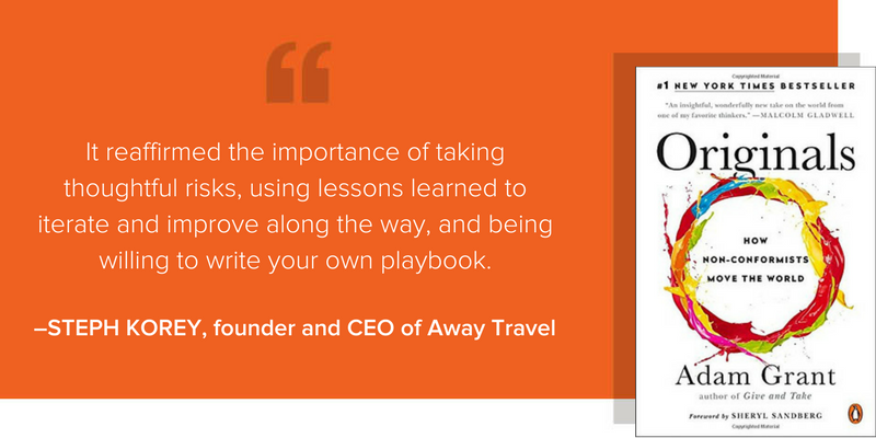 “This is a great read for anyone who’s interested in big-picture thinking,” says Steph Korey, co-founder and CEO of Away Travel.