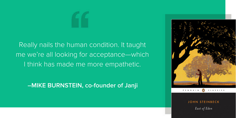 “East of Eden really nails the human condition,” says Mike Burnstein, co-founder of running apparel brand Janji. “It taught me we’re all looking for acceptance—which I think has made me more empathetic.”