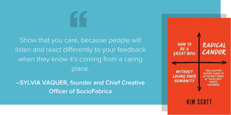 “Show that you care, because people will listen and react differently to your feedback when they know it’s coming from a caring place; get into the habit of giving praise in public and candid, constructive criticism in private; and take care of yourself first so that you are in a healthy emotional and mental state to give.”